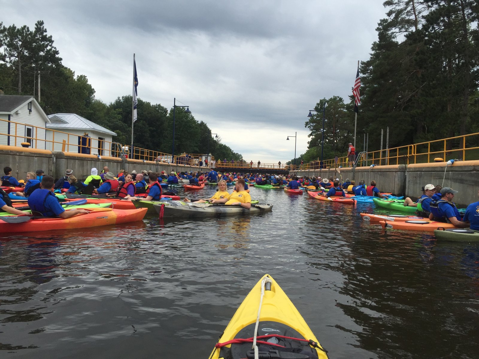 A little more that two months ago I had paddled the entire length of Lake Champlain and then the Champlain Canal. Until I reached the last of the locks in Troy, the Troy Federal Lock, I had gone through every lock on the canal alone. Today was different, very different. Today I was packed into the lock with two hundred kayakers and three boats. It was an amazing sight and an amazing opportunity.
