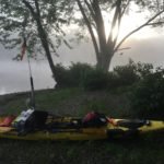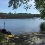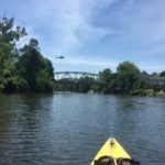Rounding the bend and closing in on my stop for tonight at Lock 4, I began to see flashing lights on the shoreline roads and then a helicopter. I was approaching the Chanel and the helicopter was above the water. There were Police and Firemen all along the shoreline and on the opposite shore; they were launching an rescue boat. This wasn’t good. I had been paddling without my PFD on but quickly got into it and zipped it up as I paddled into this mess. With that the helicopter flew overhead and its wash nearly knocked me off my boat. My hat blew off, but stayed secured to me due to the straps, but the air was hitting me so hard I could not keep the boat stable. I paddled hard to get under the bridge and out of its air wash. I waited there and chatted with one of the officers. Some kids had been jumping off the bridge above and one didn’t come up. I hugged the shore to stay out of the helicopters wash above me and to look in areas the boats could not get to, but knowing full well he was not floating above the water, but rather was on the bottom somewhere. I asked the next police boat if the divers were close by because I had Snorkel gear aboard. The channel is only ten feet deep and though the water was murky, I would go in if asked. They thanked me and said the divers were on the way.
