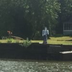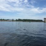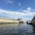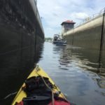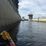 I was taking a leisurely paddle when I realized the Federal Lock was right in front of me and there was a line of boats waiting to get in. Suddenly, I saw them moving into the lock and I wasn’t close. I began paddling hard trying to catch up to them before they shut the door so I radioed the Lockmaster to let him know I was coming. I made it. Finally, I got to share a lock with some other boaters. One of them tossed me a bottle of water which I enjoyed while they lowered the Lock.