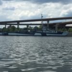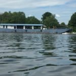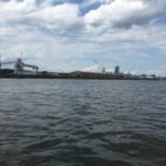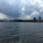 Leaving the Capital area, I entered the Industrial Area. I began to get worried. There was no place for me to get out of the water. Lined by concrete and steel walls on one side and oil storage facilities on the other, I wondered how long it would be before I found a safe place to pull out if that storm hit. I’m not concerned with rain, but rather lightening. My Lightening Detector was silent so I was happy. Then the storm arrived. No lightening, but lots and lots of rain. Having no place to get out and get my rain gear I just got wet and continued to paddle.