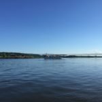 Entering the Hudson, I thought to myself, this is a beautiful day. No humidity, a nice steady Westerly breeze was keeping me cool, but not ten minutes later, that breeze turned into a blow and switched to a Southerly. With the wind now on my back pushing me and riding the low tide that was just beginning, I was flying, but that also meant I had to be on my game. I tracked across the river to the Eastern shore as I tried to navigate a straight line through this winding river. I spotted some emergency vehicles on shore and got a bit closer to find out what was happening. Just as I got there, I saw there was a diver below and another about to enter. Some Sheriffs stood on the docks and I thought to myself, this isn’t good. One of the officers began chatting with me and I asked him what happened. That is when he told me this was only training and I breathed a sigh of relief. The moment served as a reminder to be prepared and as the wind kept building and that waves increasing, I paused for a moment and threw on the life jacket. The Northerly wind and chop was also forcing these large vessels to throw off some giant wakes as they pushed head on into it. It wasn’t anything I couldn’t handle, but I had to stay focused, as boats like to get squiggly when riding a wave in the same direction they are traveling. One wrong move and these waves could roll me. I tried to shoot some video, but was only able to when it wasn’t blowing as bad.