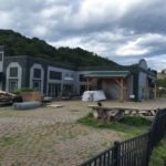 One building stood out to me. It looked like it was being built while some guy was working on an old wooden boat under an overhang. I decided to dock and go ask him if I could camp there. He wasn’t able to give me a yes or no answer, but he made a phone call and then told me to go into the building next door and speak to the people in the office.