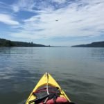 JP and Patricia introduced themselves to me and I told them what I was doing. JP opened up the Boat Club to me and offered me some water. Inside the building, there were dozens and dozens of kayaks all nicely stored in this historic building. I later learned the building had been relocated here via a barge and is the oldest boat club in its original building. I chatted with my new friends over lunch and hopefully inspired them to explore the northern region of the Hudson River someday soon. JP told me he’d reach out to his New Jersey club friends to see if he could get me some assistance when I hit Sandy Hook, NJ. Hanging out in the shade made for a remarkably different experience than being on the water. I wasn’t anxious to go back out in that heat and stifling air, but it was time for me to go so I shoved off and bid my new friends farewell.