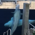 We closed the Aquarium down and as we were leaving, I noticed the two Beluga Whales that were swimming like crazy before were now watching the people leave. Well, one was watching, the other, she was sleeping. Though Beluga Whales sleep horizontally, she slept vertically and slowly spun in circles as she slept. It was like watching a ballerina. She was so graceful in the water.