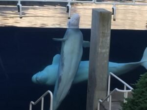 Upon arriving we headed to the Beluga Whale exhibit where we got to see two Beluga’s playing in the water in front of us. Tinier than I had imagined, but still large enough to make me worry if I encountered them in the surf where I’m kayaking, but luckily they are Arctic and Sub Arctic mammals, but even so, would probably not be interested in me or my kayak.