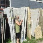 We arrived in New Milford and headed out to the stockpile of granite to find the perfect slabs for the kitchen and the bathroom. Didn’t take Arlene long to have two beautiful pieces picked out. Next up, we had to hit Home Depot to look for some in stock cabinets because the special ordered bathroom vanity never arrived.