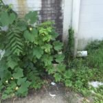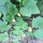 As we were leaving the granite shop, I noticed an interesting plant growing up against the industrial side of the building. I went up for a closer look. Could it be? Yes, I think it was…a Pumpkin Vine.