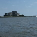 I passed under my first bridge rather quickly and could see the next far out in the distance. The land is so low here, it looked like the bridge just came out of the water and returned to the water from my vantage point. A quick check told me that Toms River, NJ was just beyond it and I planned on making that the first place I’d check for a place to stay for the night. Off to my left was an island with what looked like an abandoned building. As I got closer I could see the building was in tough shape, but it must have been beautiful at one point. I’m guessing it did not survive Hurricane Sandy as many of the homes and buildings here had not. This was Ground Zero for Sandy and just about every dock and house I passed had either been rebuilt or was heavily damaged and sat unoccupied.