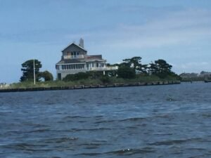 I passed under my first bridge rather quickly and could see the next far out in the distance. The land is so low here, it looked like the bridge just came out of the water and returned to the water from my vantage point. A quick check told me that Toms River, NJ was just beyond it and I planned on making that the first place I’d check for a place to stay for the night. Off to my left was an island with what looked like an abandoned building. As I got closer I could see the building was in tough shape, but it must have been beautiful at one point. I’m guessing it did not survive Hurricane Sandy as many of the homes and buildings here had not. This was Ground Zero for Sandy and just about every dock and house I passed had either been rebuilt or was heavily damaged and sat unoccupied.