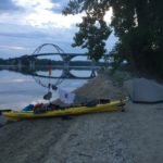 I was thinking to myself last night as I was as unstealthy as one could be while stealth camping on a beach under a No Camping sign; I sure did pick a well lit spot. The lights from the bridge had my tent and kayak lit up good. No sooner had I thought that and suddenly the lights began to shut off on the bridge as if sheer will alone controlled them. Now that I was under cover of darkness, I of course began to worry about someone walking up to the tent or kayak while I slept. While I had equipped the kayak with a bear bell to alert me if it should move in the dark of night, I’d still not want to encounter a person or a bear messing with the kayak. I told myself to stop worrying and get some much-needed rest. I think I was asleep in seconds.