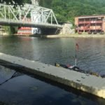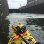 Whitehall Lock dead ahead! When I first saw the lock from the water, I was so excited. Not only had I just completed Lake Champlain, but my first lock was right in front of me. Captain Tom had given me instructions on how to radio the lock master earlier that morning so I got on the radio and called out: Lock Master this is the southbound Kayaker looking to pass through, do you copy? He did, but I could not here his reply so I did it again as I got closer. Then I heard shouting on the railing of the Lock. My friends from earlier were all there to see me through! They were waving and cheering. I had asked the Lockmaster if I should pass through and camp or camp on the lower side. That’s when Captain Tom got on the radio and told me to come through. They were docked for the night on the high side.