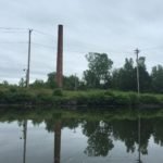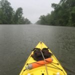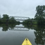 Donning my rain gear, I left the restaurant and headed down to the boat docks. I launched and made my way south along the Champlain Canal. It was really quiet and I imagined a time when the canal was busy with commerce as remnants of its once former center of economic resource stood erect on the banks as I paddled past. Every once in a while I’d come across a little private dock and path that would lead back to a house, but other than that the canal was quiet and lonesome except for an occasional boat that would motor past in the opposite direction.