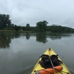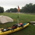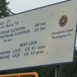 Entering the canal I saw a sign that told me how long to the next lock, Lock 9 (there is no Lock 10) It was just over 9 miles away and here it was 1:41 PM. I started late, dilly-dallied and now I might not make it to Lock 9 where I could camp for the night and where I knew the lockmaster might leave early if no boats were coming through. Lock 9 was, after all, where I had previously visited the locks before starting this trip and I had noticed that they do leave early if no boats were coming through. If I got locked out of the lock on the low side, camping would be difficult as I’d have to scale a high wall to get up and off the water or I could paddle back north a bit to a clearing. I began paddling fast and digging in. Almost 10 miles needed to be done in 4 hours, less if he leaves early and the constant on and off rain storms required me to keep stopping to put on or take off rain gear as it was way to warm paddling in rain gear when it wasn’t raining.