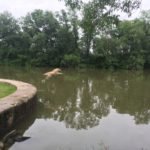 Where I pulled out was locally known as Daisy Beach. Daisy is a Yellow Lab that loves to swim the Canal and is an expert Dock Jumper. Daisy treated me to a show as I set up camp just before the rain started.