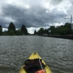 I said Good Bye to Kristin and launched back into the water. The paddle south was pleasant and a nice stiff Southerly wind was pushing me along, along with the southerly current. My only concern was the strong storms all around me. Watching my Radar on the phone, I saw big storm cells, but they all kept breaking up before hitting the Canal section I was in. A little while later, under full sun, I got a video from Kristin who was now driving in one of those storm cells and it was bad. My luck…good.
