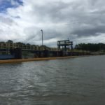 Nearing the end of the day, I also arrived at the Hudson River. I still have some locks to pass through, but I am officially in the Hudson now. As I approached Lock 7 I heard a horn toot, a very loud horn. I looked up ahead at the lock and there was a giant barge sitting in it getting lifted. I radioed the Lockmaster. Lock 7 Do you copy? Lock 7 he replied. Let me know when it’s clear to enter. The Lockmaster told me that as soon as the barge passed me, it would be clear. I replied that I was tied up to the old NYS Canal Tug on the bank and he said that is a good spot to stay. The gates opened and the barge was pushed out. It was huge and its massive size made it look like it was inches from me. Truth is, there were feet. Not many feet, but feet. I looked at the size of it and wondered how any boat, other than a kayak, could get past that monster if they met him on the canal.