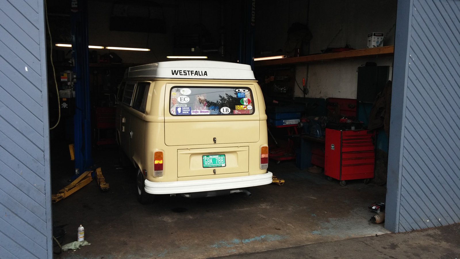 Miles had an old working one there so we swapped it out so I can be sure to have a working defroster. Our final project was minor, but an easy fix. Wiring up the Water Pump for domestic water. After another quick education in how the electric runs on the Bus, which is different from American cars I grew up with ( Brown is Ground, Black is Keyed power, Red is Constant Power), it was obvious that I simply had it hooked up wrong, but once hooked up we discovered the pump housing was leaking. So we left it for another day once I can get anew pump on the road. We ended the visit with a quick check of the timing and ensuring the heads were good and off I went for my weekend in Eugene.