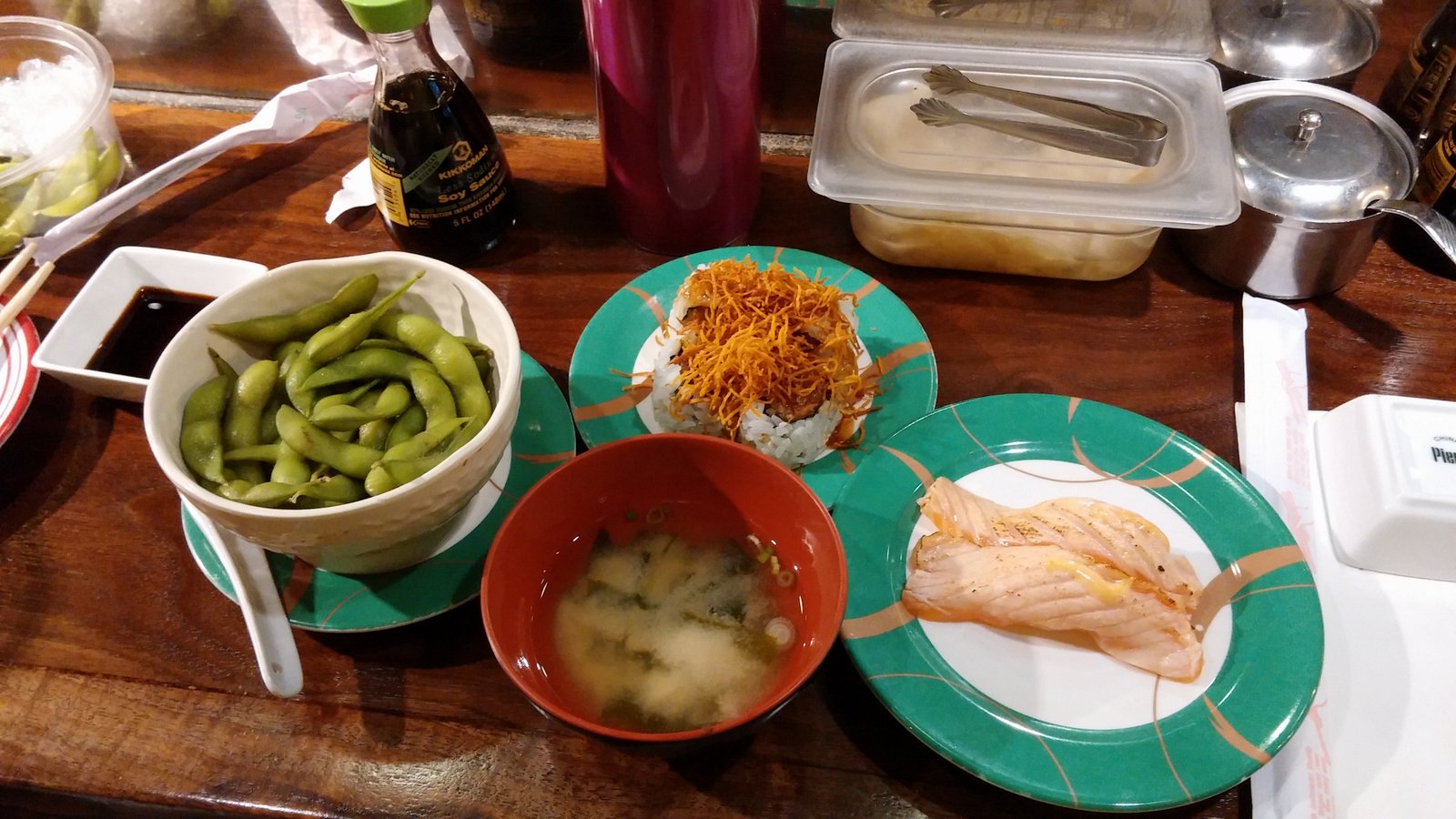 I met up with my old friend Luna whom I had not seen since 1989 and we headed out for an early dinner. Tonight she wanted to take me for Sushi which I have never had. Off we went to the Sushi Station. Well almost. See the buses are not known for their well functioning seat belts and it took her quite a while to get hooked in. Its just one of the quirks you have to love about the bus. I really enjoyed Sushi. I didn’t think I would, but it was not awful at all. It was quite enjoyable actually.