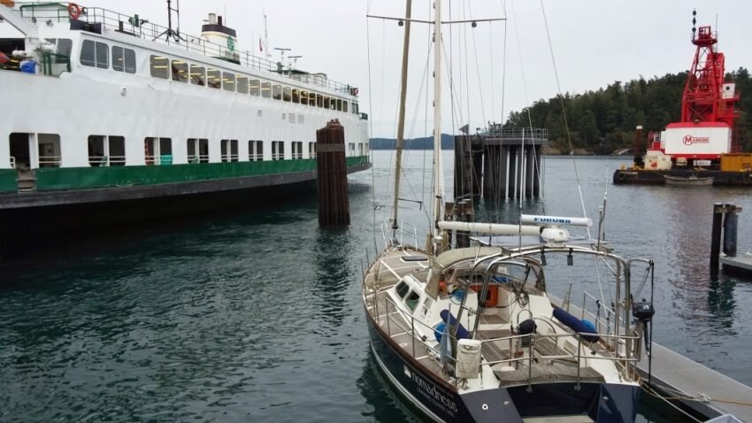 We pulled into Friday Harbor and I saw my friend Steven K. Roberts boat right away. SV Nomadness was docked right next to the ferry, but being greeted by the “friendly” US Customs Agent was another story. I actually expected entry back into the US to be problem free. After all, I’m a US Citizen and I have my paperwork and I just left the US yesterday. Unfortunately that was anything but the case. I was scrutinized thoroughly by the Customs Agent. She asked why I was there and I said to visit a friend. She wanted to know how I knew Steven and I said On Line. She did not like that so she questioned me further about him. I pointed to his boat to my left and said, that’s his boat. He’s right there! She insisted I open the bus and she began going through everything. All cabinets, drawers…everything. Good thing Sandy is tiny or I’d still be there. She either didn’t like that I only spent a day in Victoria or that I was visiting an unknown friend or that I was driving a bus, but she too asked me how much I paid for the bus and wanted to know why I did not head to Vermont from Reno NV. In all honesty, if I took emotion and facial expression out of the picture; both Customs Agents asked me the same questions and basically did the same job, but the way the Canadian Customs Agent handled it made me feel welcomed while the US Customs Agent made me feel like I did something wrong.