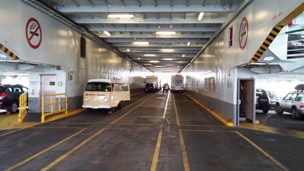 I pulled in and for some reason the smiley and chatty US Border agent at the gate was having a great conversation with the people in front of me, but they are already loading the cars. I finally get through and she forgets to tell me (and evidently the people behind me) which line we need to be in. We both ended up in the wrong lane, but for me, this now meant I had to back Sandy up the ramp and onto the ferry. It’s a good thing I don’t have a problem driving backwards.  Once aboard, Lexie and I went up to the passenger deck to relax and take some pictures.