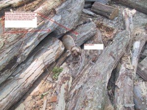 Lexie Lost and Stuck 3 Can you see the bad dog in this picture? I can finally touch her. Still not a whimper or whine. That log is on her head.