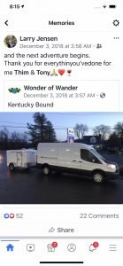 I set out that morning in my plain white Ford Transit Cargo Van with a plain white cargo trailer in tow, bound for Washington State, but first I was to stop at my friend Jenn’s house in Louisville, KY to put in a new wood floor. It was there I would celebrate my Fifty-Fourth Birthday with her and her family. From there I would continue Westbound to celebrate Christmas and New Years Eve with my friends Steve and Marina in Newport, OR. Then I would head up to Olympia, WA where I would be house sitting for my friends Colleen and Dale whom I had met back in 2013 when I passed through the area in my VW Bus. The same Bus I was in six years prior on the Coast of New England. I was scheduled to be in Olympia for 3 months.