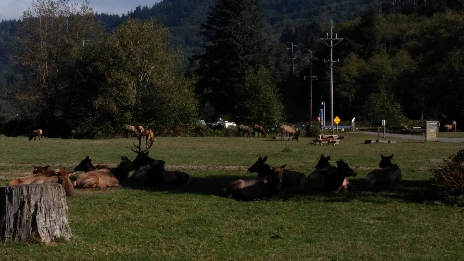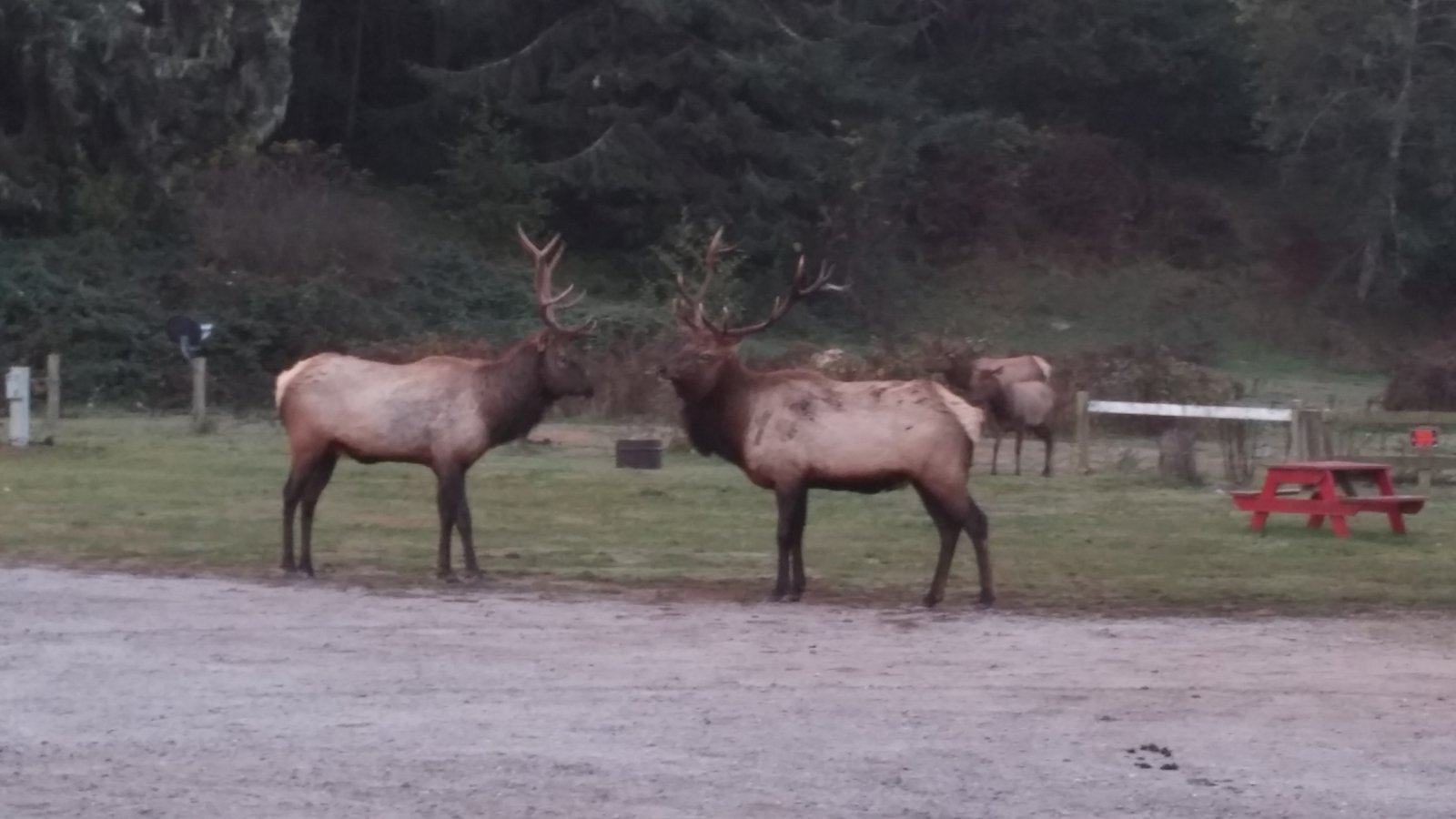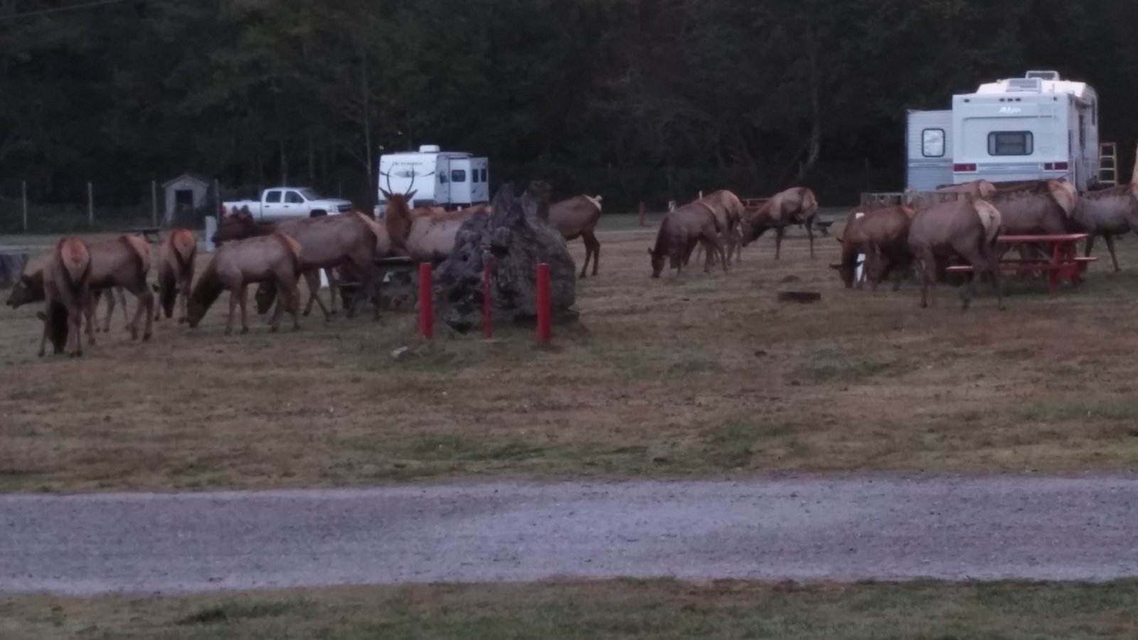 1030130800Last night we set up camp in Trinidad, CA at Elk Country RV. It’s a bit of a run down place, but what it lacks in amenities it makes up for in location. And that would be being smack dab in the middle of the Largest Roosevelt Elk Herd on the West Coast.