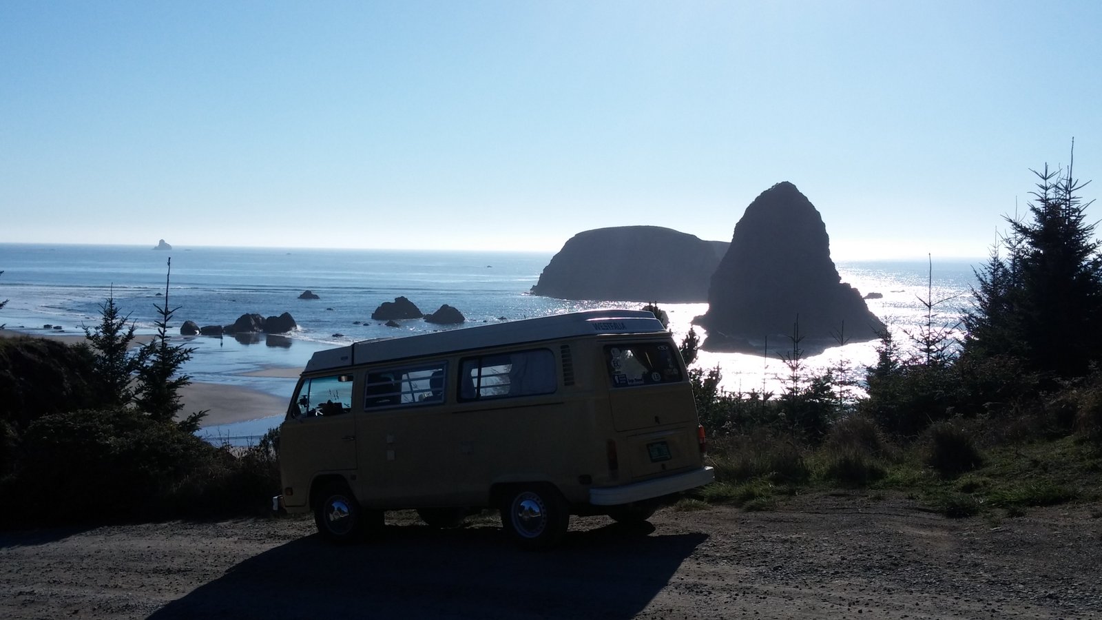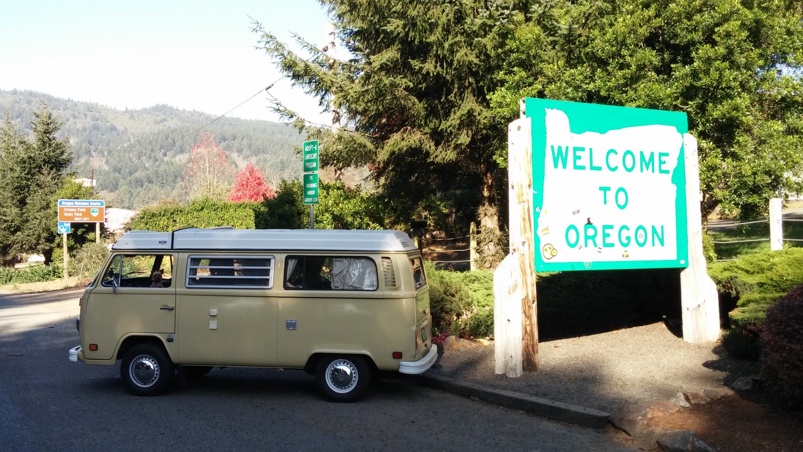 I  was most excited when the 101 turned back toward the coast in Crescent City as I am home whenever I am by the ocean. Shortly before we hit Crescent City I took a detour to Klamath 1030131506Park and climbed a steep single lane road up the side of a mountain as I was attempting to get onto the beach. I never did find the beach entrance even though I did see vehicles down there, so we turned around and got back on the 101.  A little while later were were crossing the state line. We have arrived in Oregon!