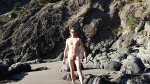I1030131540b took Lexie down onto the beach with me for a photo op on the rocks and marveled at how smooth and dark the sand was. It was too much for me to resist. I simply had to take a dip or rather, a skinny dip since the beach was complete l empty. Yep…Oregon water is COLD, but the sun and beach was warm so it balanced out nicely.
