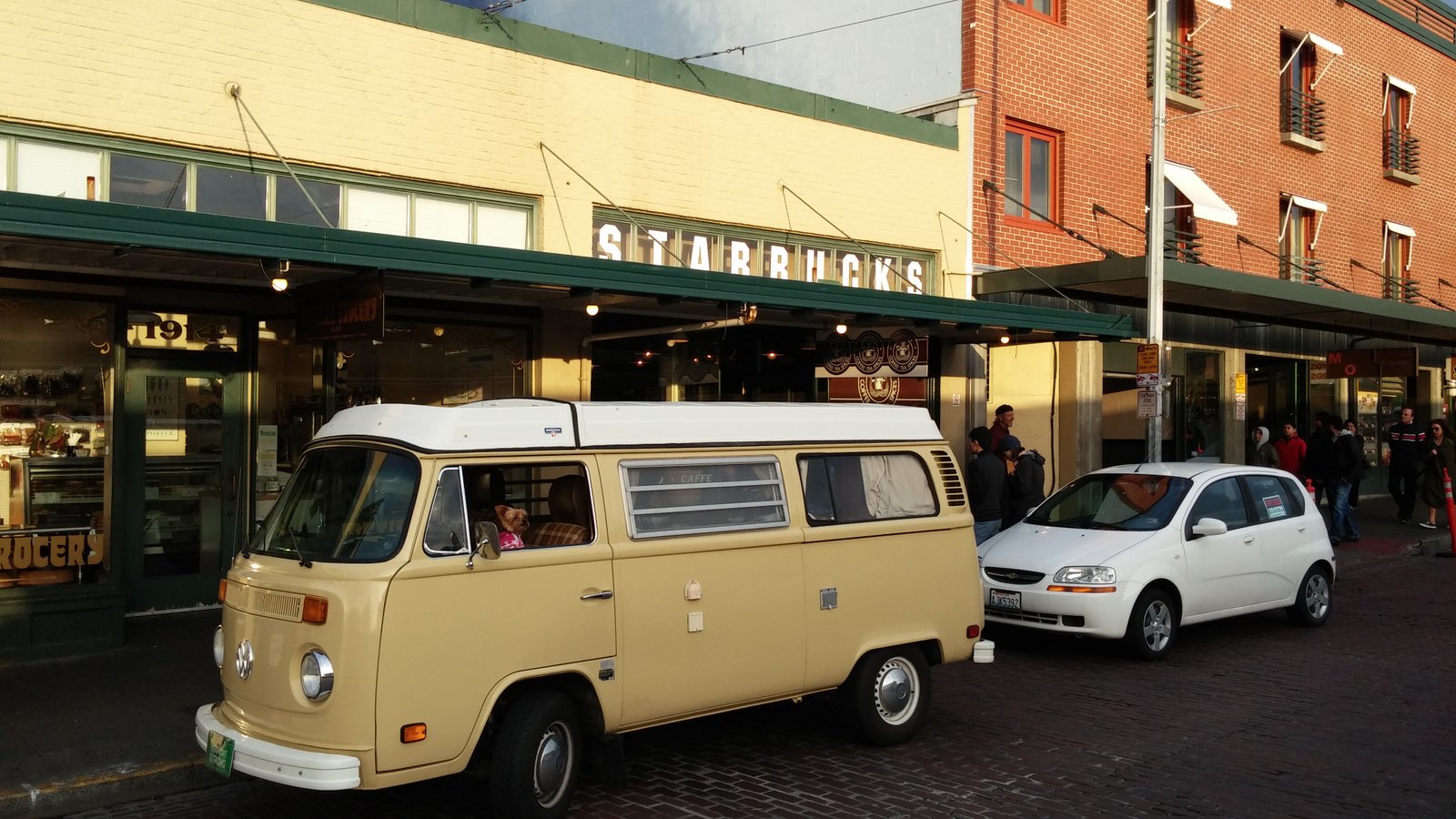 After spending a sunny afternoon in Pike Place and a number of photo ops, we got in the bus and headed north to meet up with some fellow bus friends I had never met. Not 10 minutes into the trip the skies opened up and the rains came again. I pulled into the parking lot for Spiro’s Pizza and Pasta and awaiting the arrival of the Cascade Kombi members who were meeting here for their monthly meet.
